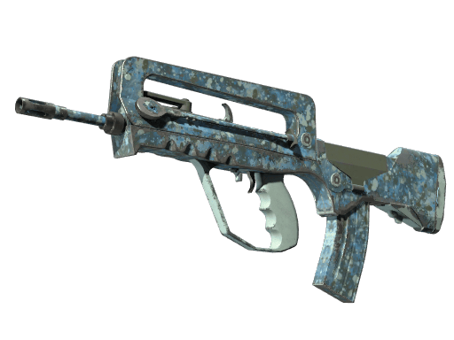 With a price from $0.06 to $0.76, the FAMAS | Cyanospatter (Well-Worn) is affordable mid-range Rifle skin. It is widely available and can be bought on different marketplaces.