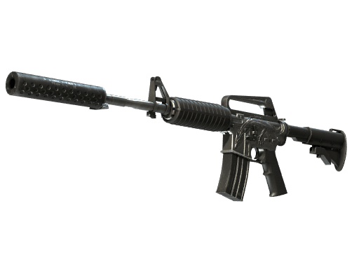 With a smaller magazine than its unmuffled counterpart, the silenced M4A1 provides quieter shots with less recoil and better accuracy. It has been etched with a basilisk.