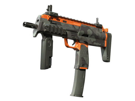 Versatile but expensive, the German-made MP7 SMG is the perfect choice for high-impact close-range combat. It has been custom painted with urban camo and orange accents.